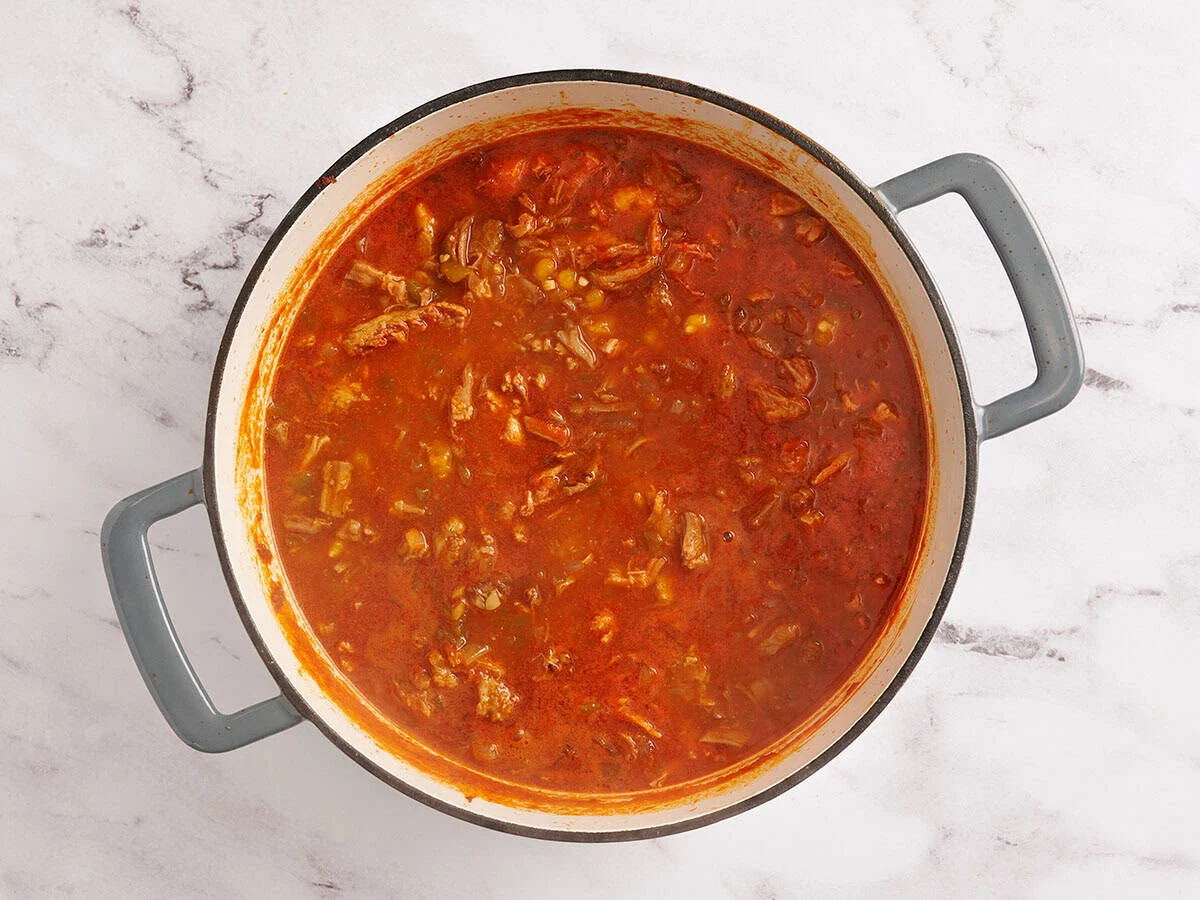 A critical component of the recipe’s success is the use of a roux to create a thick, flavorful base in a fraction of the time required for a traditional chile-based broth. The process involves sautéing onions in two tablespoons of vegetable oil, then adding flour and mild chili powder to create a paste. This "toasts" the spices, releasing essential oils and deepening the flavor profile.