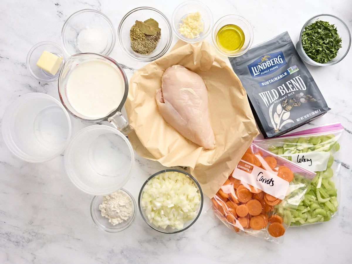 The integration of a whole 1-pound chicken breast, wild rice mix, and six cups of water initiates a slow-simmering process. By cooking the chicken whole within the liquid, the recipe effectively creates a "poached" environment that retains moisture in the protein while simultaneously extracting collagen and flavor into the surrounding water, effectively creating a natural stock in situ. The inclusion of wild rice is a deliberate nutritional and textural choice; wild rice (Zizania) is a high-protein, high-fiber aquatic grass that maintains its structural integrity longer than traditional white rice during extended simmering.