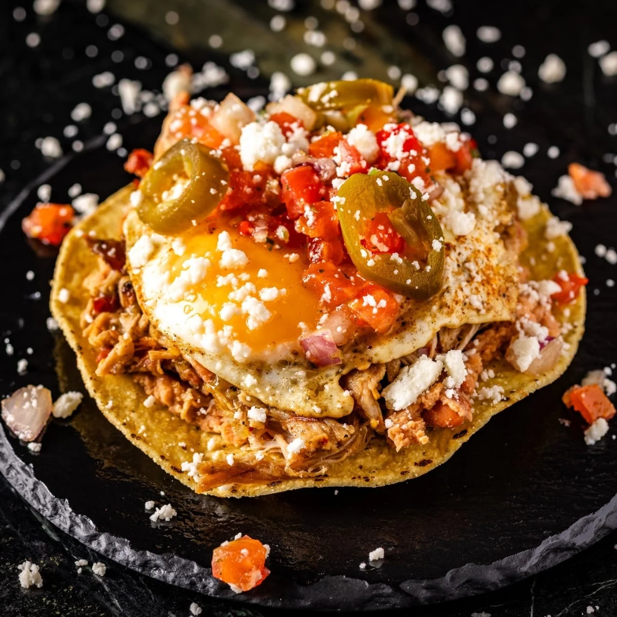 At its core, the Pulled Pork Huevos Rancheros is an exercise in structural and flavor balancing. The dish departs from the traditional soft corn tortilla base, instead utilizing a fried corn tostada to provide a necessary structural integrity capable of supporting heavy proteins. This base is layered with refried beans, which serve both as a protein source and a biological adhesive for the subsequent toppings.