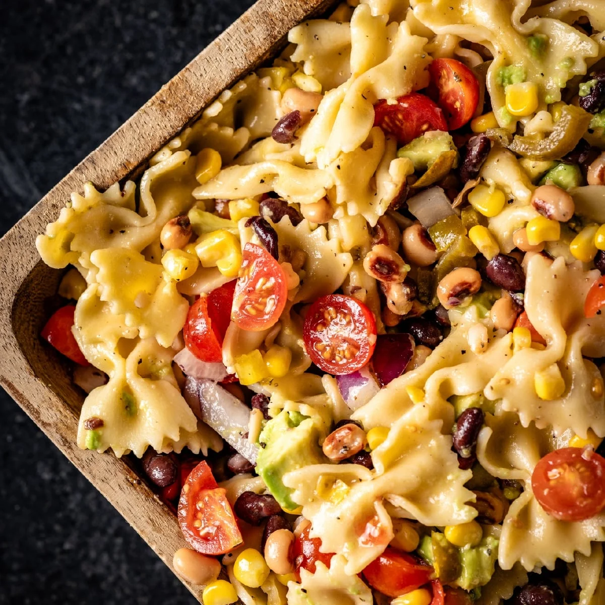 The chemical interaction within the dressing—a mixture of lime juice, red wine vinegar, and olive oil—serves a dual purpose. The acidity of the lime juice acts as a denaturant, helping to "cook" the raw onions and soften the starch in the pasta, while also preventing the oxidation of the avocado. The addition of pickled jalapeños introduces capsaicin, which provides a metabolic boost and a sensory "kick" that balances the sweetness of the corn.