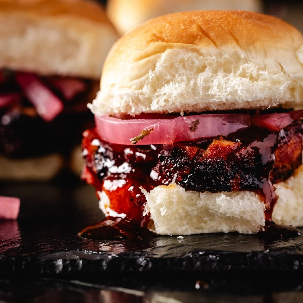 To prevent the dish from becoming cloying, the addition of pickled red onions is a calculated culinary necessity. The acetic acid in the pickling brine cuts through the richness of the pork and the sugar of the BBQ sauce, providing a "brightness" that cleanses the palate between bites. The use of Hawaiian rolls, which are enriched with sugar and fats, provides a soft, pillowy vessel that absorbs the excess sauce, ensuring a cohesive eating experience.