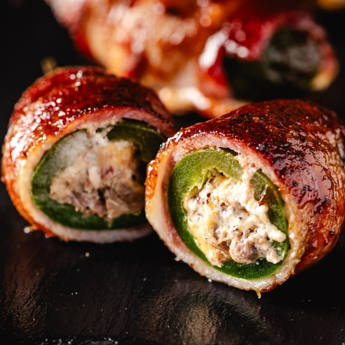 3. Stuffing and Sealing: Each pepper is generously stuffed. The longitudinal slit is pressed closed, and a full strip of bacon is wrapped spirally around the pepper, ensuring the ends are tucked or secured to prevent unraveling during the protein contraction that occurs during cooking.